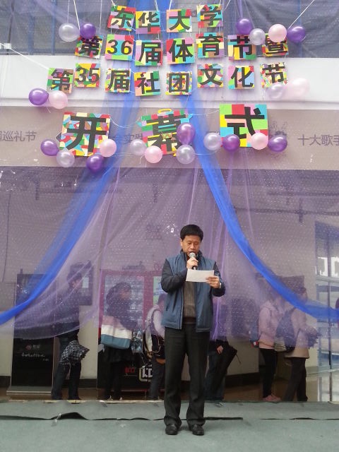3月25日,学校第36届体育节暨第35届社团文化节在松江校区开幕。校团委书记张晓冬,体育部副主任朱江华,校学生会秘书长封华老师,体育部教师张拥军、熊涛、王喆、钟茵菲,以及学生代表参加活动。裁判员代表朱江华和运动员代表、机械学院李博厚同学在开幕式上宣誓,并一同从体育节吉祥物“火焰马”手中接过体育节会旗。