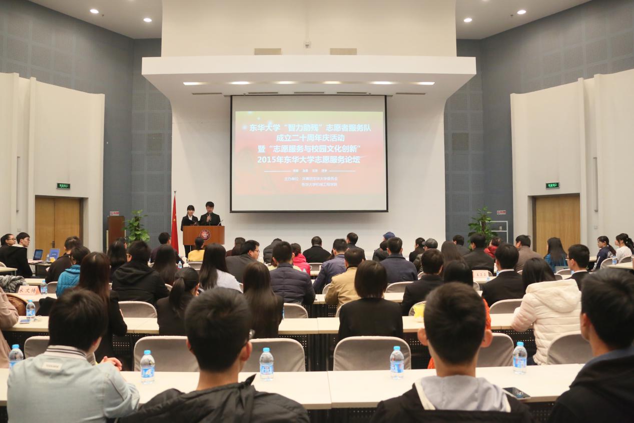今年是我校“智力助残”志愿者服务队成立二十周年。12月12日,团委、机械学院在松江校区共同主办庆祝活动,上海市文明办志愿服务工作处,团市委志愿者工作部,上海市肢残人协会,市智力助残志愿者服务基地,松江区文明办,以及我校学生处、团委、机械学院有关负责人及志愿服务师生代表等参加活动。