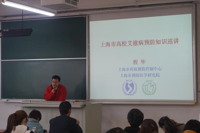 2015年12月4日,上海市疾病控制中心程华教授在延安路校区进行了题为“禁毒与预防艾滋”的讲座,吸引众多学生参加。
