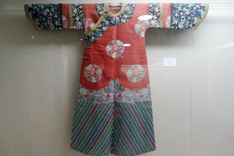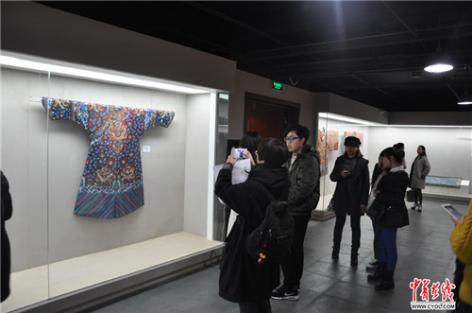 The exhibits, borrowed from a cultural relics collector in Beijing, are valuable in studying mutual influence on clothing between Han and Manchu peoples and of much aesthetic values, said Li Xiaojun, the exhibition designer.