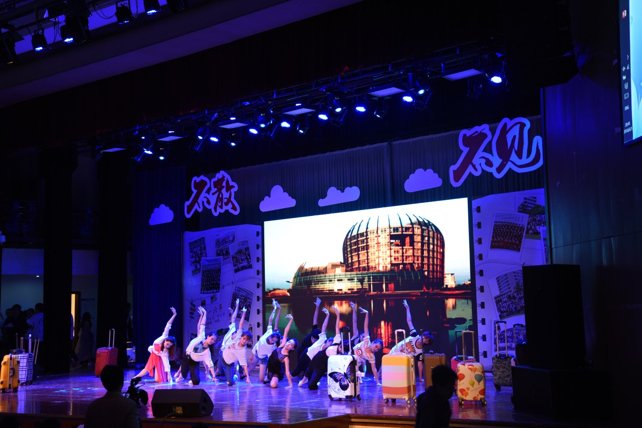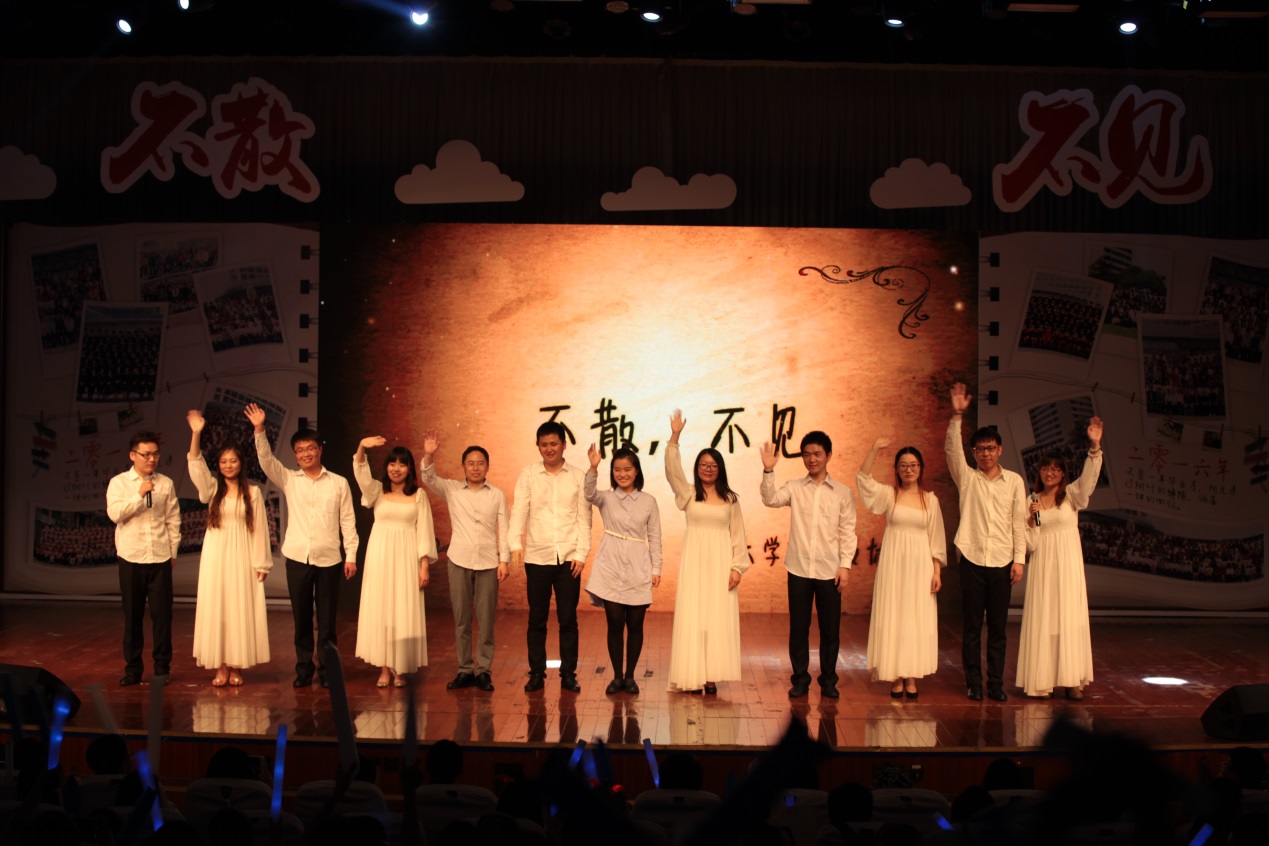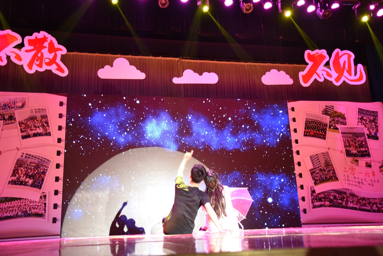 作为我校毕业季的品牌活动,本次晚会从策划到演出,所有节目均由学生自编、自导、自演。晚会以“不散不见”为主题,分为“初遇东华”“缘来是你”“与我启程”和“不说再见”四篇章,每个篇章均由校学生舞蹈团精心编排的舞蹈引出,生动表达了东华学子在校园里的真情实感。在“初遇东华”篇章,舞蹈《起航》让大家看见了曾经初来大学的自己,带着自己的梦想从东华起航。聆听着课堂上老师的精彩一课、看着校园十大歌手的表演、参加着各种社团活动,完美再现了初遇东华的憧憬与欣喜。在“缘来是你”篇章,服装学院服装表演专业的学生用专业的走台展示纺织学院毕业生的原创设计作品,曼妙的舞蹈表演和诙谐幽默的小品更让毕业生沉浸在欢声笑语中。在“与我启程”篇章,教工朗诵协会一首《高处何所有》的深情朗诵,为毕业生们送上师长们的深情寄语。在“不说再见”篇章,承载毕业生四年回忆的视频《大学回忆录》、校学生合唱团的大合唱、以及毕业生辅导员表演的《时间都去哪儿了》将晚会气氛推向高潮。“再见了我留给镜月湖的最后一夜,图书馆的闭馆曲此刻却比老情歌还让人怀念”……带着东华的四年回忆,带着师长的谆谆嘱托,毕业不说再见,现场不少毕业生潸然泪下,晚会在一首东华版的《不说再见》歌曲中落幕。