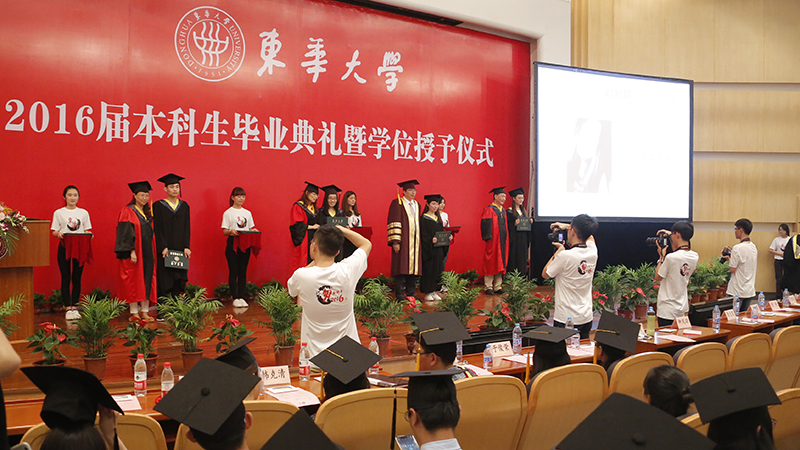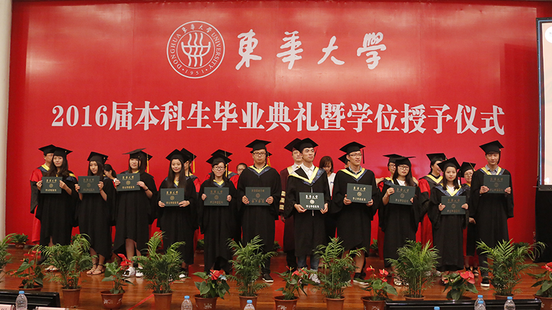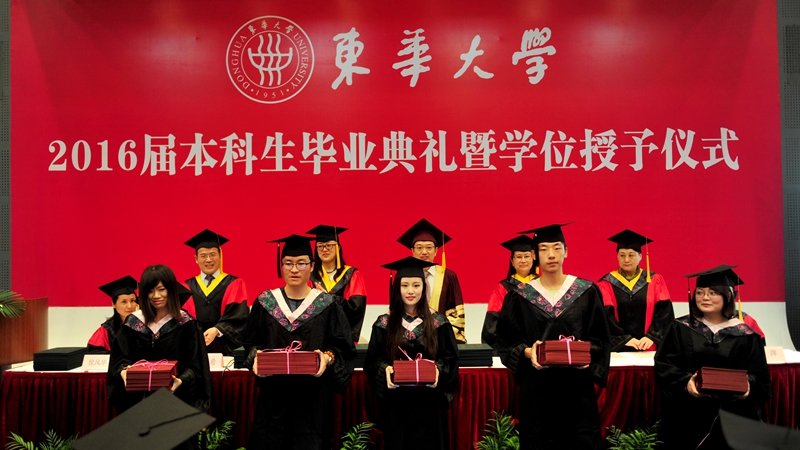 6月23日,材料学院、纺织学院、外语学院2016届本科生毕业典礼暨学位授予仪式在松江校区举行。