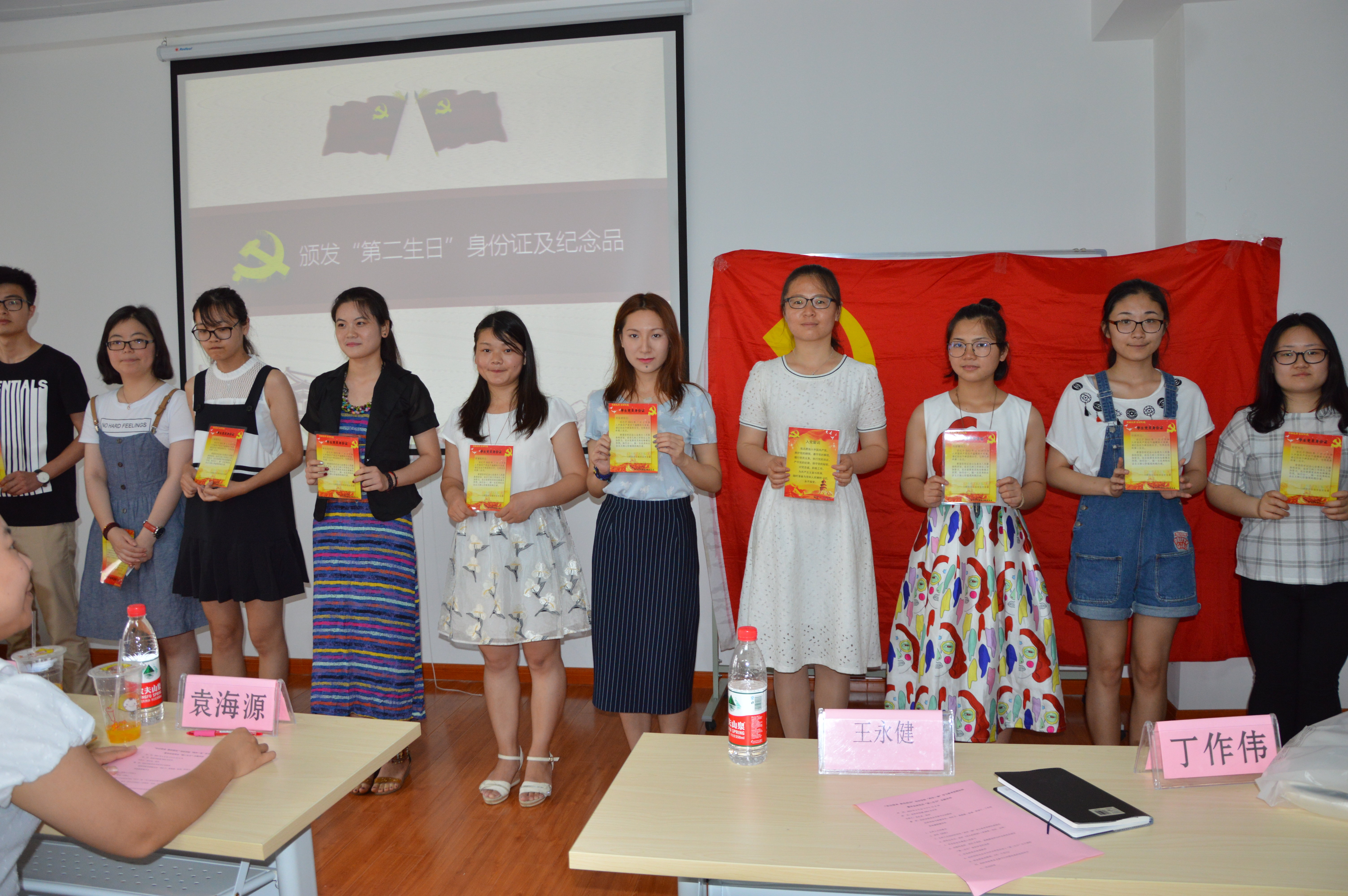 作为纺织学院党建品牌项目的党员“第二生日”主题活动已经成功举办过数届,众多党员在活动中受教育。为进一步增强毕业班党员的责任意识,纺织学院党总支特意为12级毕业班党员举办“第二生日”主题活动,毕业班党员在支部书记顾苑园的带领下重温了入党誓词,每位党员进行承诺践诺,表示会牢记党员使命,在未来的工作中将纺院的精神传播出去。刘雯玮、冉红卫以及袁海源3位老师为每位毕业班党员颁发了党员身份证与纪念品,勉励他们在以后的岗位上干出成绩,报效党和国家的栽培。活动中,15级硕士党支部的党员同志还为大家带来精彩的相声表演《成长的烦恼》,祝愿毕业班的党员在今后的成长道路上抛开烦恼、奋勇前进。