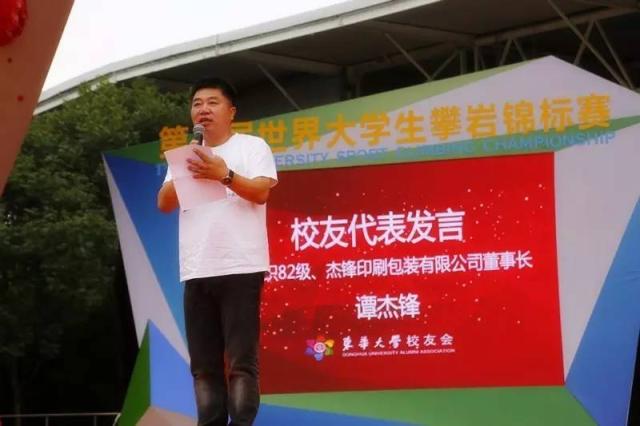 时值82级校友毕业三十周年,针织82级校友、杰锋印刷包装有限公司董事长谭杰锋作为校友代表发言。谭杰锋表示母校是校友们美好青春的寄托,校友们为母校发展过程中取得的每一个进步都兴奋不已、倍感自豪,在他看来,母校与校友,根脉相连,心手相牵——今天的重聚不光是为了重温恩师教诲、回忆青春年华,更是为了与母校一起共创未来!