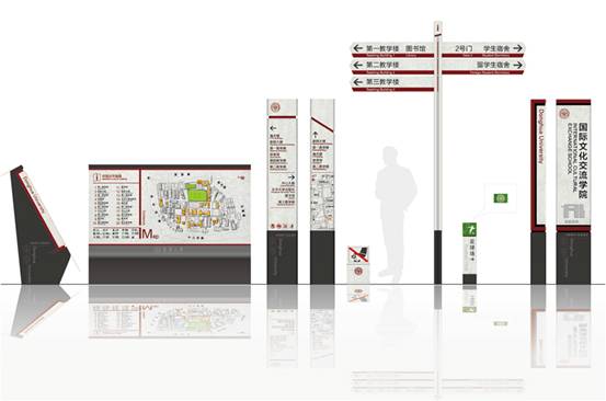 新建成的导视系统分为四级导向,由校园总体信息标识、校园区域指示标识、分流指示标识及建筑名称标识组成。其中校园总体信息标识、校园区域指示标识、分流指示标识及建筑名称标识还具备夜间发光功能,给夜晚的校园增添一抹亮色。