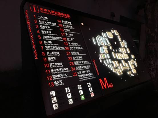 据悉,学校校园导视系统建设项目于2014年底启动,由党委宣传部牵头,党办、校办、延安路校区办、基建后勤处、国际合作处、保卫处、资产管理处等多个部门通力合作。在建设过程中,建设部门注重广泛征求校内外专家和师生意见,松江校区导视系统投入使用一年多,得到师生广泛好评。随着延安路校区导视系统投入使用,我校校园导视系统的建设工作已整体完成,两个校区导视系统既有联系又有区别,在为师生及访客提供方向指引的同时,进一步优化了学校的校园文化环境,是东华校园文化的积极实践和传承。