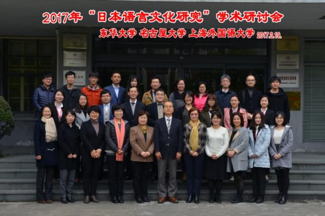 3月19日,由我校外语学院、名古屋大学研究生院国际语言文化研究科和上海外国语大学日本文化经济学院共同主办的2017年“日本语言文化研究”学术研究会在延安西路校区举行。这是外语学院与名古屋大学国际语言文化研究科自2014年缔结《学术交流协议书》以来,共同举办的第四届“日本语言文化研究”学术研究会。外语学院总支书记林嵘、院长赵晓临教授及名古屋大学研究生院国际语言文化研究科负责人、国际语言中心主任福田真人教授,上海外国语大学日本文化经济学院副院长高洁教授等参加会议。
