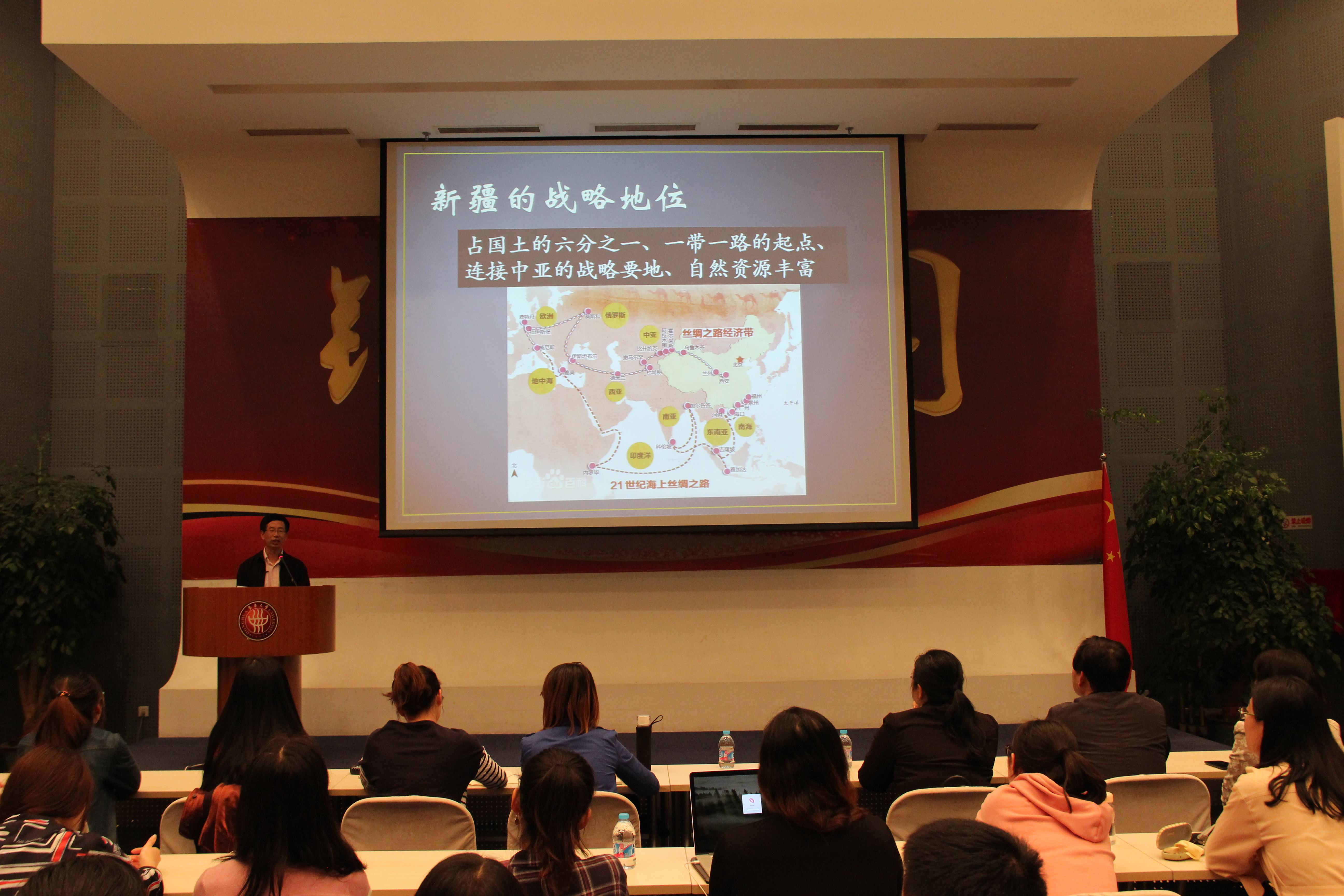 讲课现场,邱夷平教授还介绍了每期援疆实践团的具体工作和幕后故事,并就协调科研与实践关系、援疆团参加者需具备的基本素质等问题与学生进行了深入交流。