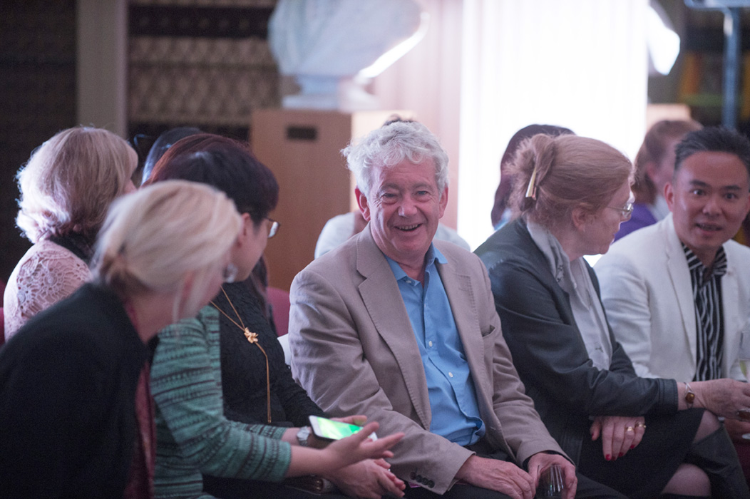 (现场观众反响热烈,右图居中为爱丁堡大学校长奥谢爵士)