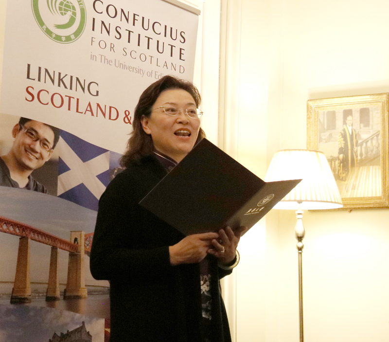 (崔运花副书记与中国驻爱丁堡总领事馆孙旭东副总领事(右二)交流)