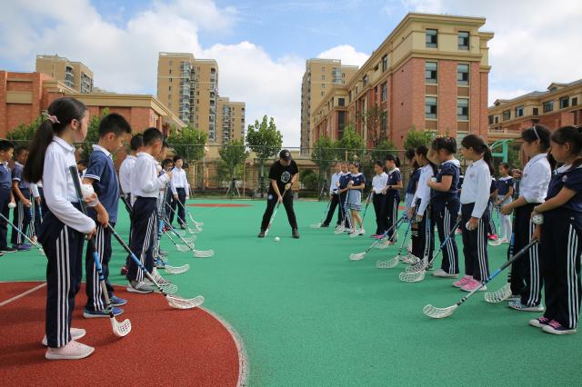 会后,与会人员观摩了郭雪奇老师执教的第一堂旱地冰球课,朱江华主任和周卫斌校长与孩子们一起挥杆,体验运动的快乐,期冀未来丰硕的教学成果。