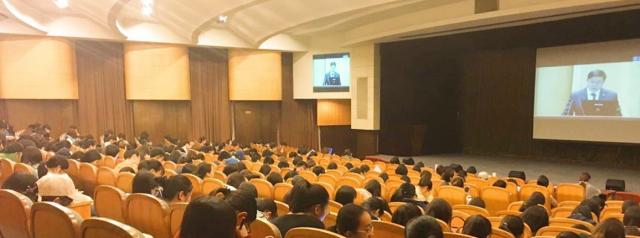 11月14日,管理学院师生在延安路校区集中收看全国科学道德与学风建设宣传教育报告会,学院党委书记林文伟,副院长徐琪、姚洪心、张科静,教师代表、学生等200余人参与报告会直播观看。为深入贯彻党的十九大对新时代创新人才培养要求,恪守科学道德,坚持学术创新,学院师生在旭日楼418和三主二楼演讲厅同时进行报告会直播学习。报告会上,全国政协副主席万钢同志,李晓红、邱勇、周琪三位院士分别就科学创新深谈感悟并给予广大师生重要学术指导。