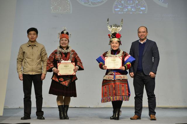 活动中,嘉宾和教师代表为本期非遗学员颁发结业证书并合影留念。冯信群为张玉晶同学颁发“积极分子”的荣誉证书,葛永铭、李俊为本期研修班优秀学员张婕和王冬梅颁发荣誉证书。全体参训教师、非遗学员、模特、结对学员及嘉宾现场合影留念。