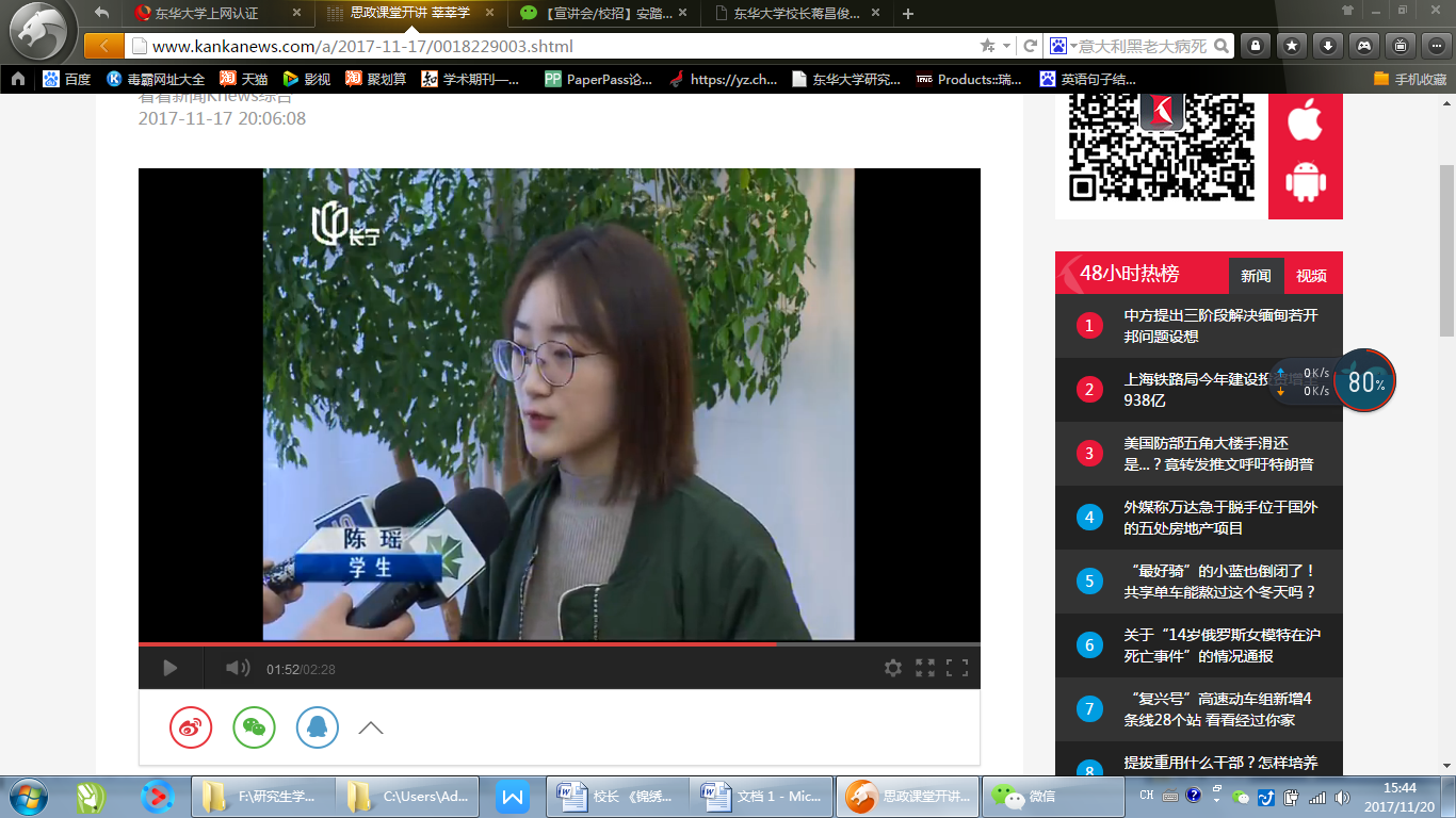 作为《锦绣中国》课程的粉丝之一,马克思主义学院2016级硕士研究生谭勇说,这门课汇集了校内外如此多的名师大家,是我们身边学习的榜样,课上介绍的“高大上”的学术科研成果代表了东华特色。同时,各类案例特“接地气”,让我们对学校发展历史和专业学习有了更深刻全面的认识,系列课程向我们传递的科学素养和工匠精神令人受用一生。