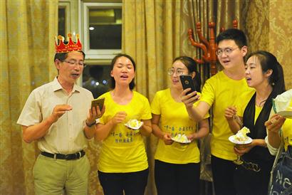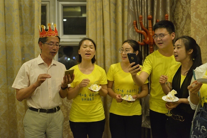 援疆团学子为邱夷平(左一)过62岁生日