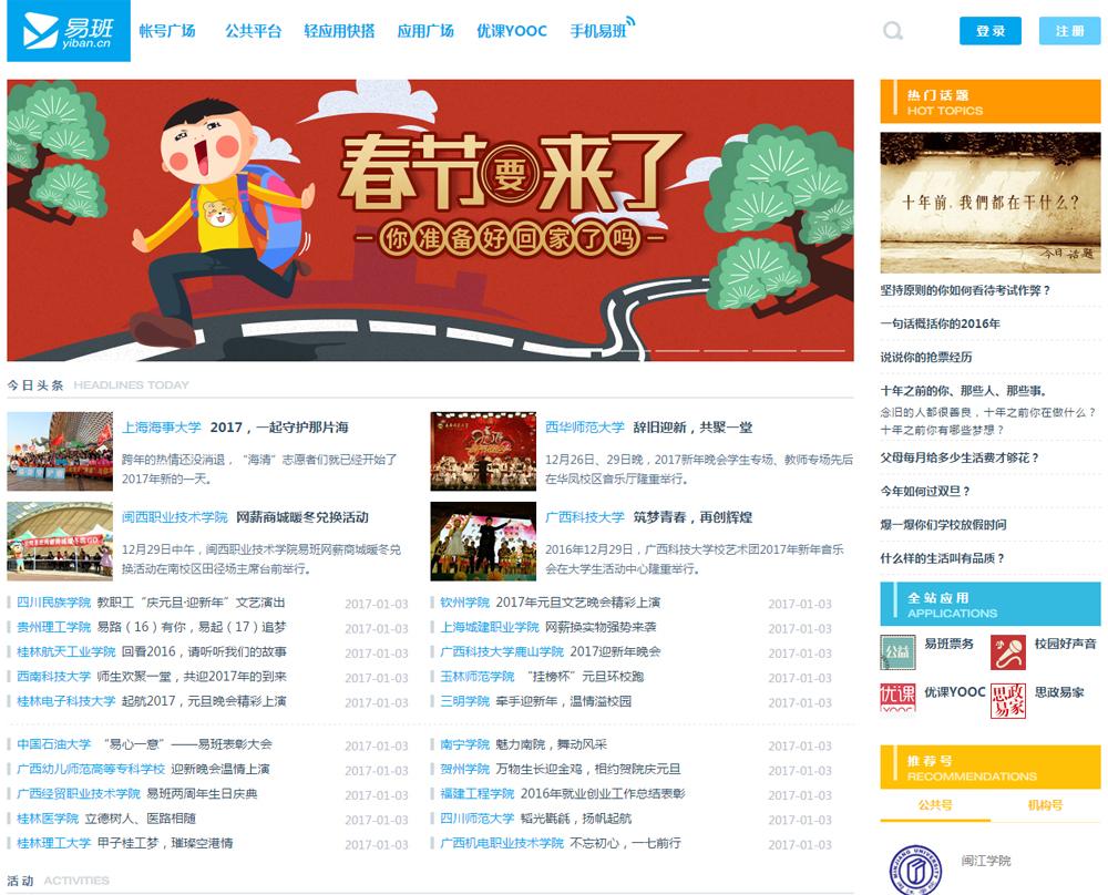 易班2015年起开始面向全国高校推广,除申城各级各类学校外,现已覆盖16个省区市的282所高校。