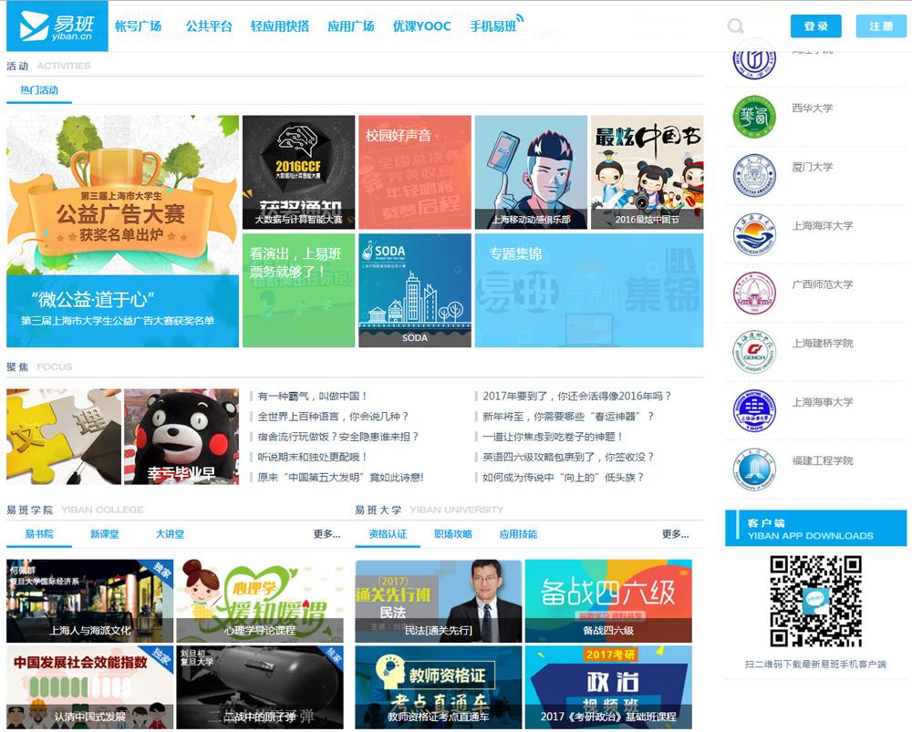 在整个易班上,从《太史令和你聊聊中国节》、《核心价值观系列之教育平等》到《中国发展社会效能指数》等,各校均把一座难求的名师课程制作成易班学院的网络课。复旦大学国际政治系沈逸老师开设了《国家网络安全战略》课程,讲述互联网环境下的国与国关系,引发学子广泛关注。以往一门课程,日复一日、年复一年,可以基本不变。而今,网课时空开放,各学校各年级都能选能听,“如果PPT不改改,马上就被看穿,连课上讲的笑话都要更新,不然学长会跟学弟学妹说:两年前就听过了”。一个网班千百名学生在“用鼠标投票”,上好网课更要老师用好互联网思维。