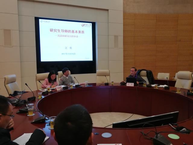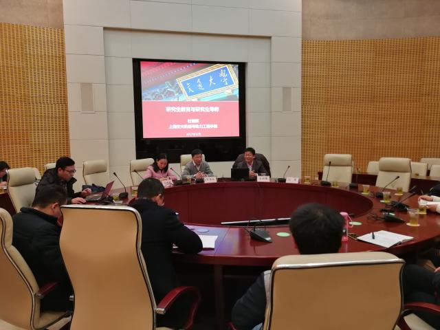 为更好地学习党的十九大报告关于高等教育的精神,贯彻落实立德树人的根本任务,增强博士生指导教师的指导能力和水平,不断提高博士研究生教育的质量,学校于近期举办了博士生导师工作交流与培训会议。会议特邀全国工程专业学位教育指导委员会委员、上海交通大学机械学院党委书记兼院长杜朝辉教授,国家杰出青年基金获得者、材料学院江莞教授和研究生部主任、发展规划处处长舒慧生教授作专题报告。会议由研究生部副主任刘晓艳主持。近几年新晋博士生导师和研究生部工作人员参会。