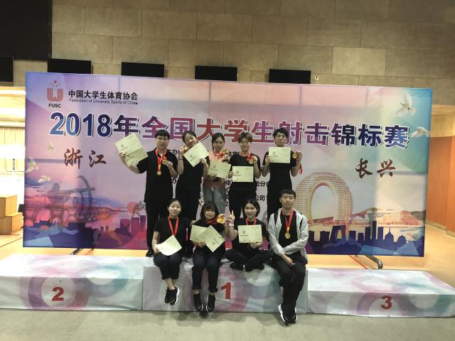 7月22日至25日,2018年全国大学生射击锦标赛在浙江落下帷幕。经过4天紧张激烈的比赛,我校6名队员成功闯进决赛,收获3金2铜,并夺得气手枪团体总分第一名\甲组团体总分第二名的好成绩。