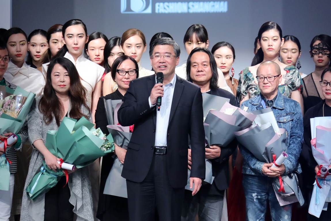 (朱民、李永智为现场设计师颁发“2019上海时尚之都建设服装设计成就奖”