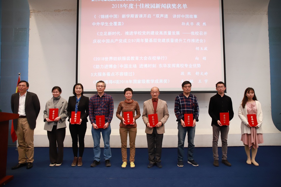 (卿凤翎为年度十佳校园新闻获奖者颁奖)