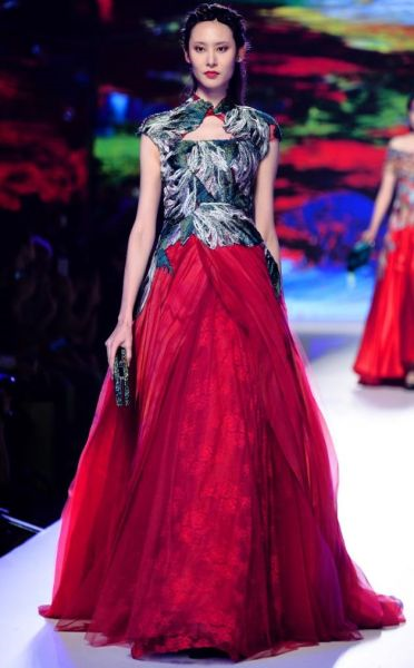 美籍华人时装设计师、APEC会议领导人服装主要创作成员、GRACECHEN品牌创始人陈野槐谈到,中国文化的本质是深刻、宏大、智慧的,她用静、深、富来概括以中国文化为根源的普世审美观。陈野槐此次展览作品主题是LandscapeofHearts内心风景,本系列作品以西式剪裁审美加以中式精妙工艺点睛,勾勒出中国女性独特的优雅曼妙线条之美与气质,意欲解读与塑造一种全新的东方女性形象。设计风格中西合璧、刚柔相济、大气优雅。工艺上,在娴熟运用立体裁剪的基础之上,将编织、流苏、立体盘花,甚至少数民族的锡绣、马尾绣等,巧妙地融入到高定作品中。