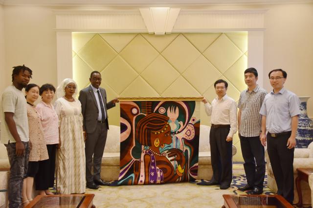 会见结束时,邱为阿萨内佩戴上校友校徽,阿萨内向母校赠送了一张西非文化特色的挂毯。‍