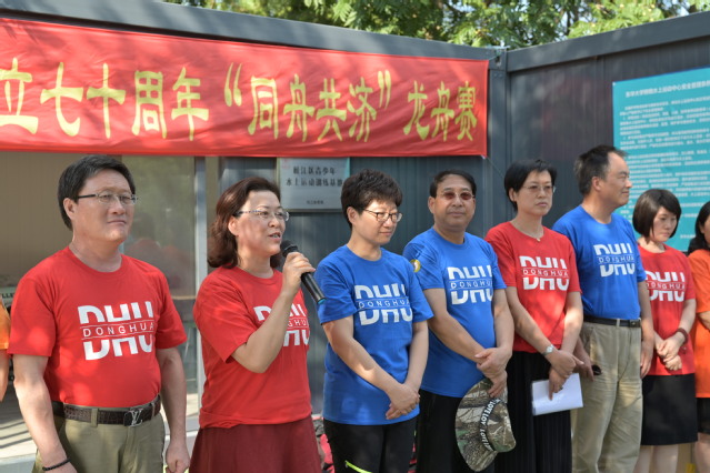 崔运花在开幕式上对龙舟赛的举行表示热烈祝贺,对党委统战部的精心组织、体育部的大力支持,各民主党派统战团体的积极响应表示感谢。她表示,2019年是新中国成立70周年,同时也是中国共产党领导的多党合作和政治协商制度确立70周年,学校统一战线组织开展系列庆祝活动是为了更好的传承和发扬各民主党派和无党派人士同中国共产党同舟共济、团结奋斗光荣传统的创新举措,龙舟赛不仅有利于各民主党派和统战团体成员在速度与激情的对决中,增强团队默契,增进交流和互动,还能激发广大统一战线成员在工作中发扬团结合作的精神,不忘合作初心,上下同心,开拓奋进,以良好精神面貌庆祝新中国成立70周年。随后,崔运花与统战部、体育部和承办部门的负责人共同参与了龙舟“点睛”仪式。