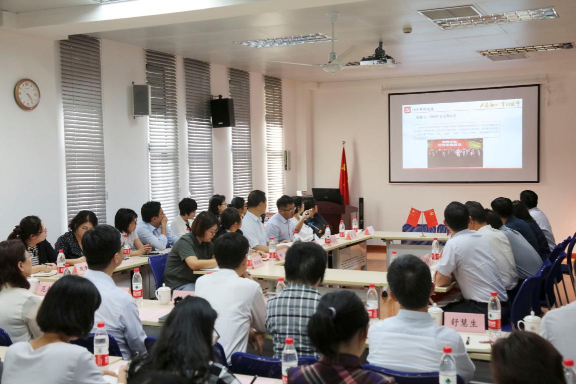 学校入选教育部“双创”工作、上海市教卫党委“攀登”计划建设“样板支部”书记、“双带头人”教师党支部书记工作室负责人、纺织学院教师党支部书记及各二级单位党组织专职党务干部等50余人现场观摩。
