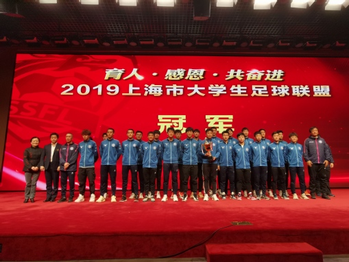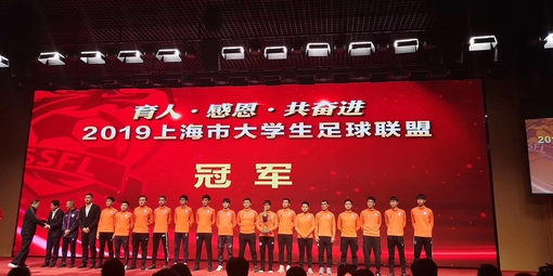 1月5日,2019上海市大学生足球联盟颁奖主题活动在上海大学召开,我校足球队分获男子超级组冠军、最佳运动员、最佳守门员、最佳教练员以及校园组冠军、最佳运动员、最佳教练员等七个重要奖项,成为了本次颁奖晚会的最大赢家。上海市教育委员会、上海市体育局、各高校代表、足球名宿等参加颁奖活动,活动由上海市教育委员会、上海市体育局、上海报业集团共同主办。