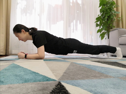 4、做一次俯卧撑,屈臂俯身至肘关节略高于躯干,然后伸臂起身还原