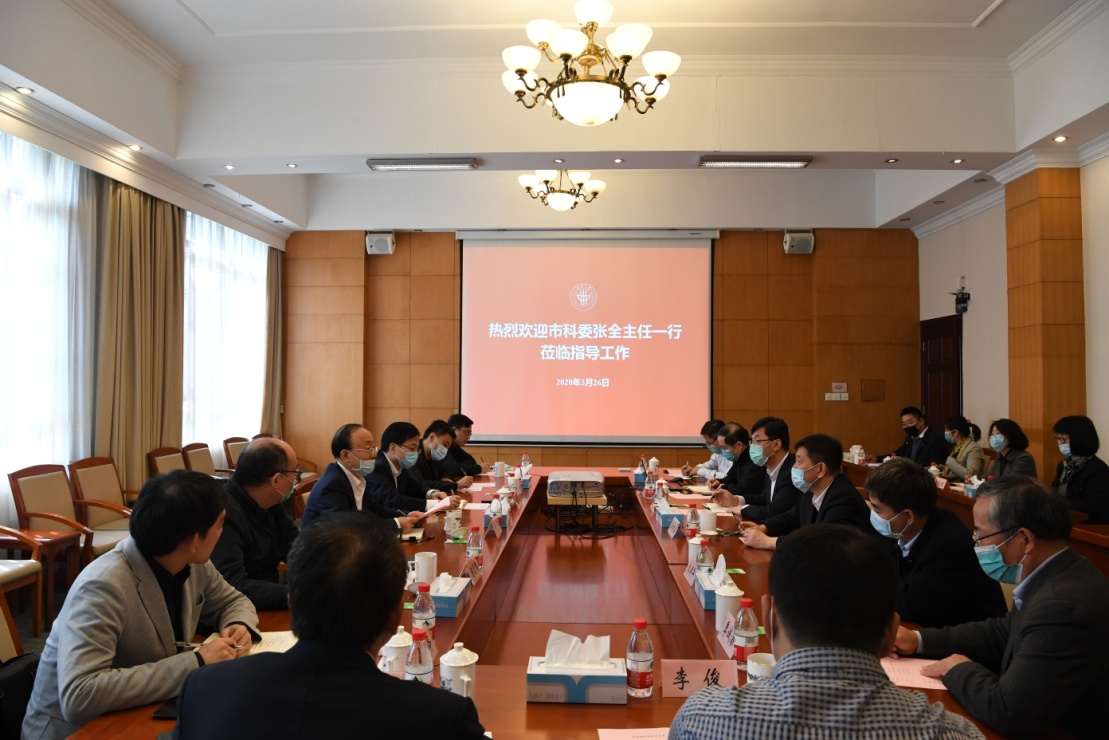 3月26日上午,上海市科委主任张全、总工程师陆敏等一行来校调研指导科技创新与服务上海工作。党委书记刘承功、校长俞建勇、副校长陈南梁出席调研座谈会。