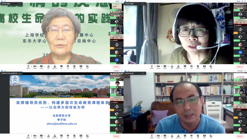 研讨会上,陆晓娅做了“疫情中的生命教育契机——我的思考与尝试”的专题分享。她围绕“什么是生命教育?生命教育的目的是什么?谁来做生命教育?怎样做生命教育”,从“疫情中向生命提问的25个问题”开始,引入疫情期大家对生命、对自己、对家人、对危机中的反思和学习的思考,通过抗疫中生动的案例进行回应。张海燕从“上海市高校生命教育的演进及生命教育的内涵”、“抗逆力的培养是生命教育的重要议题”、“生命意义与生命价值的引领”、“不要忽视死亡教育”四个方面分享了自己疫情后对学生生命教育的思考。何仁富结合自己疫情中的工作和研究分享了“大学开展生命教育的两个核心理念和四个基本策略”。申子姣以“发挥辅导员优势,构建多层次生命教育课程体系”为主题,从课程体系、课程理念、多维度“心教练”团队建设、助教团岗位设置、年轻的《生死课》教师养成记、自己进行这项工作的收获体会等方面分享了北京师范大学的在生命教育课程体系建设中的具体实践经验,对高校进行生命教育课程建设具有很好的参考价值和指导意义。