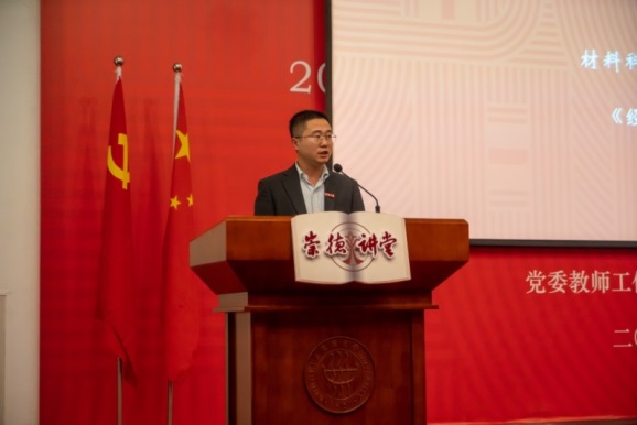 新教职工代表、材料科学与工程学院王刚在发言中谈到,“作为一名科研工作者,要将科技报国的理想融入到事业中,为建设科技强国、实现中华民族伟大复兴贡献力量。”机械工程学院叶圣华以“学习者”“教育者”“引领者”三种身份诠释新时代辅导员的职责使命,表示要以奋斗之我,走好新时代长征路,用点滴行动做“四有”好老师。