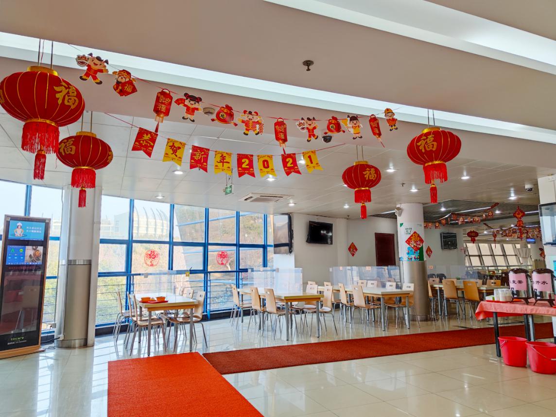 (喜气洋洋的食堂静候在“家”过年的学子)