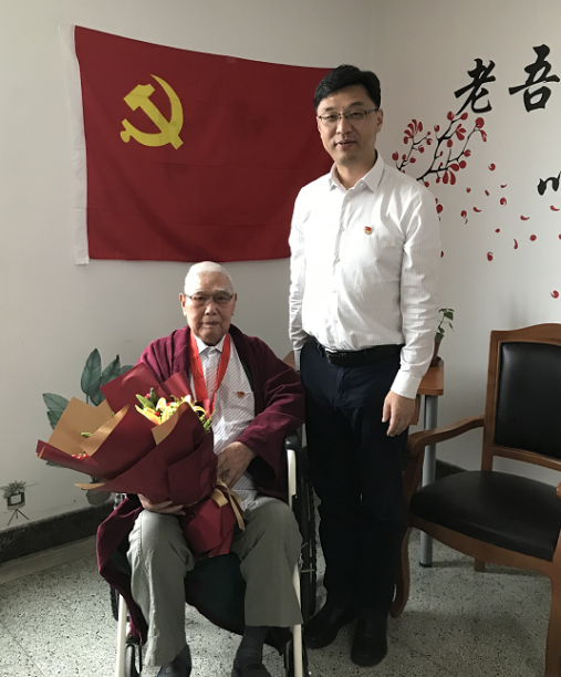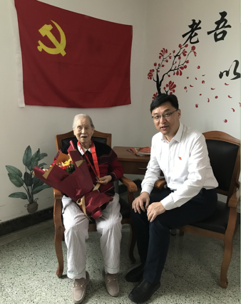 (刘承功慰问离休干部刘洁、老党员沈焕明并为其颁发纪念章)