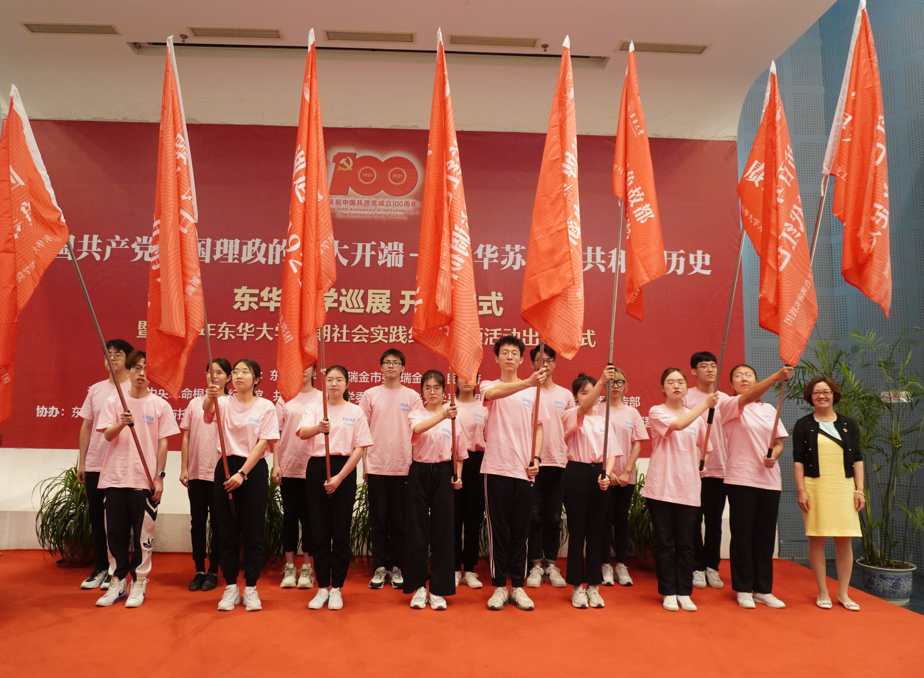 会上,2021年学校暑期社会实践红色专项团队出征,刘淑慧为团队学生代表授旗。据悉,今年全校有364支暑期社会实践团队,其中红色专项团队109支,他们将前往延安、瑞金、遵义等地,用脚步丈量红色热土。开展仪式后,瑞金中央革命根据地纪念馆讲解员为学生讲解志愿者开展专业培训。