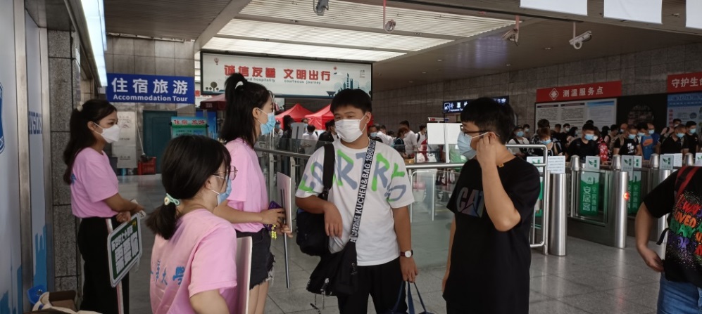 为了更好地服务广大新生,学校各部门各司其职。在火车站、地铁站、宿舍区……迎新志愿者们跑前跑后,成为一道亮丽的风景线。早在报到前一天,来自各学院的400多名迎新志愿者们就提前上岗开展迎新志愿服务。“作为学长,希望能够将志愿奉献精神传给新生,今年是建校70周年,也是表达我对母校的一份爱,欢迎成为东华人。”迎新志愿者、理学院朱锦涛同学这样告诉记者。