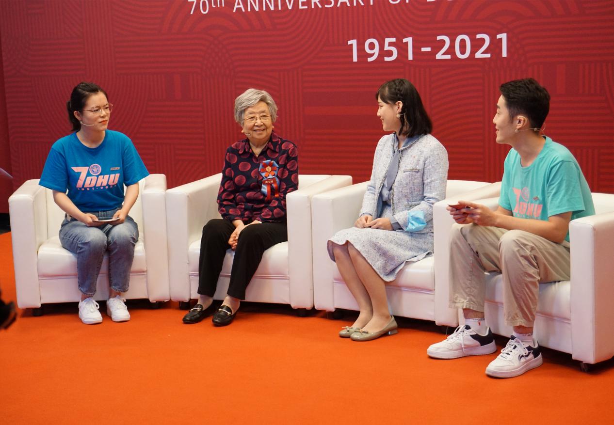 “我们将不惧风雨、勇挑重担,以实现中华民族伟大复兴为己任,让奋斗的青春在磨砺中绽放绚丽之花!”大会现场,还有一个特别的环节备受瞩目。70名东华学子身着“锦缎红”,带来慷慨激昂、青春洋溢的献词,他们用真诚质朴的语言向母校深情告白,抒发“东华有我,请母校放心,未来有我,请祖国放心,强国有我,请党放心”的铮铮誓言。