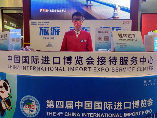 第三届进博会时服务于翻译处,协助外籍友人使用翻译机以及解答外籍友人的问询。凭借对进博会的场馆记忆,她灵活应对,耐心解答国外展商、观众等需要翻译服务的问题,用语言为进博服务。