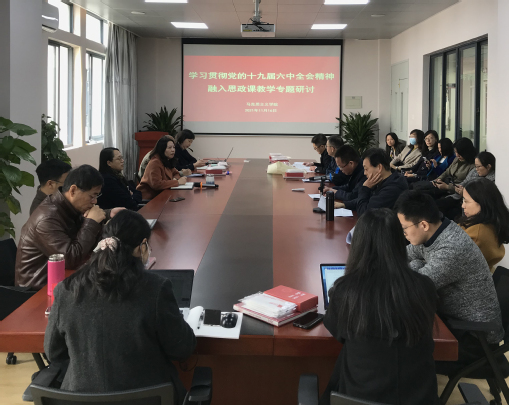 马克思主义学院深入开展党史学习教育,11月16日组织召开学习贯彻党的十九届六中全会精神融入思政课教学专题研讨。学院党政班子成员和全体思政课教师参加会议,会议由学院总支书记戴叶萍主持。