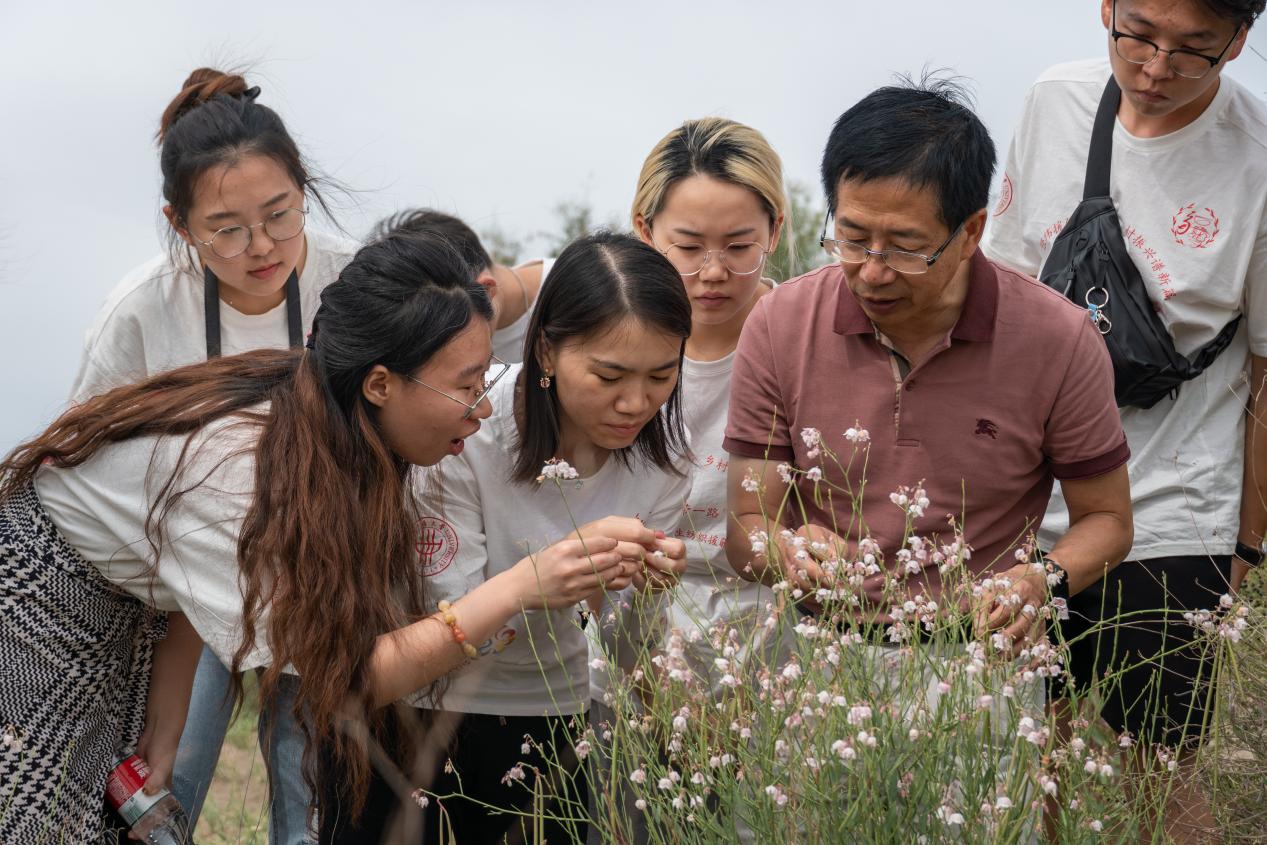 (纺织援疆团尉犁罗布麻分队实地调研罗布麻生长情况)