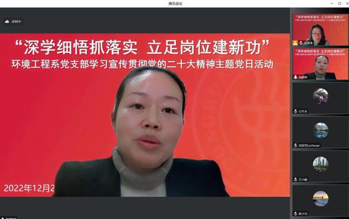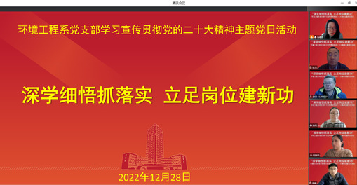 12月28日,环境工程系党支部举行了“深学细悟抓落实,立足岗位建新功”主题党日活动,学习宣传贯彻党的二十大精神。