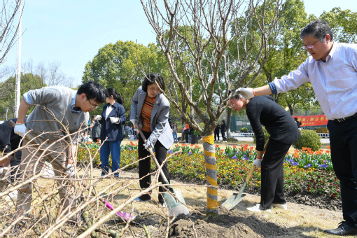 春光明媚,绿意盎然,万物复苏。恰逢我国第45个植树节来临之际,植树节苗木种植劳动实践活动在松江校区举行。副校长李炜,后勤服务中心、校团委和环境学院相关负责人参与本次活动,与近百名师生代表一起挥锹植树。